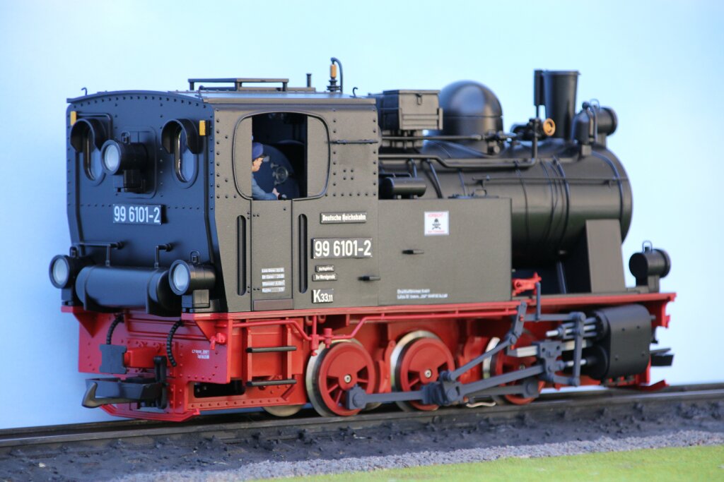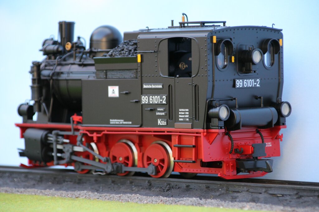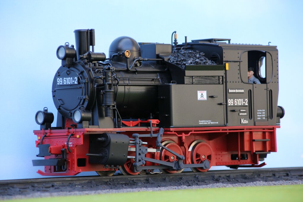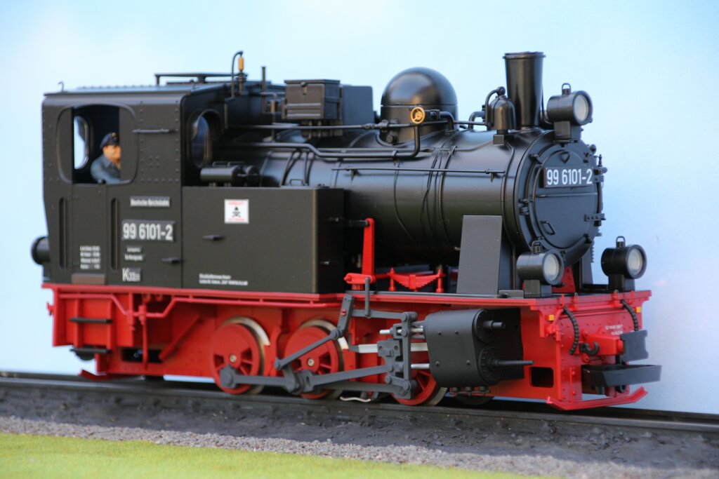VORBILD Henschel baute 1914 zwei kleine C-Kuppler für die Heeresfeldbahnen. Das Württembergische Eisenbahn Regiment wollte die Unterschiede zwischen Nass- und Heißdampf ermitteln. Als Teststrecke wurde eine Zweigstrecke kurz außerhalb von Drei Annen Hohne in Richtung Brocken (Harzquerbahn) gebaut. 1917 konnte eine der zwei Loks von der Nordhausen-Wernigeroder Eisenbahn-Gesellschaft (NWE) erworben werden und erhielt die Betriebsnummer NWE 6 (Heißdampfmaschine). 1920 konnte die NWE auch die Schwestermaschine beschaffen und gab ihr die Nummer NWE 7. 1949 wurde die NWE enteignet und die Harzquerbahn ging über in die Deutsche Reichsbahn. Die Loks NWE 6 und 7 erhielten die Nummern 99 6101 und 99 6102. Aufgrund geringer Leistung und niedriger Achslast (11t) waren die Loks äußerst geeignet für den Rollbockbetrieb in Wernigerode. Der letzte planmäßige Rollbockzug fuhr schließlich 1991. 1993 wurde die Harzquerbahn wieder privatisiert und ging über in die Harzer Schmalspurbahnen GmbH (HSB). Die Loks existieren noch heute und können zu besonderen Anlässen besichtigt werden. Da die Heißdampfmaschine einen schärferen Auspuffschlag gegenüber der Nassdampfmaschine hat, erhielten die Loks die passenden Beinamen Pfiffi (Heißdampf) und Fiffi (Nassdampf). MODELL Train Line 45 hat 2016 ein Modell der HSB 99 6101 entwickelt. Dieses gelungene und sehr maßstabgetreue Modell bildet die Grundlage für unseren DR 99 6101-2. Viele Anpassungen wurden vorgenommen. Hier ist das Ergebnis. Alle Änderungen wurden von Hand vorgenommen, wodurch die Lok ein besonders hochwertiges Finish erhält. Für dieses Modell bieten wir optional einen ESU Loksound XL 5 oder einen ZIMO MX696S mit Däppen Sound an. Diese werden ab Werk eingebaut. Beide Decoder sind technisch nahezu identisch. Ihre Wünsche sind entscheidend. TECHNIK Die Lok verfügt über folgende Eigenschaften: