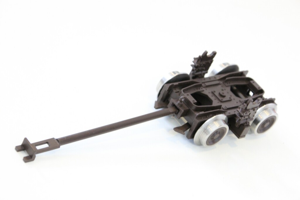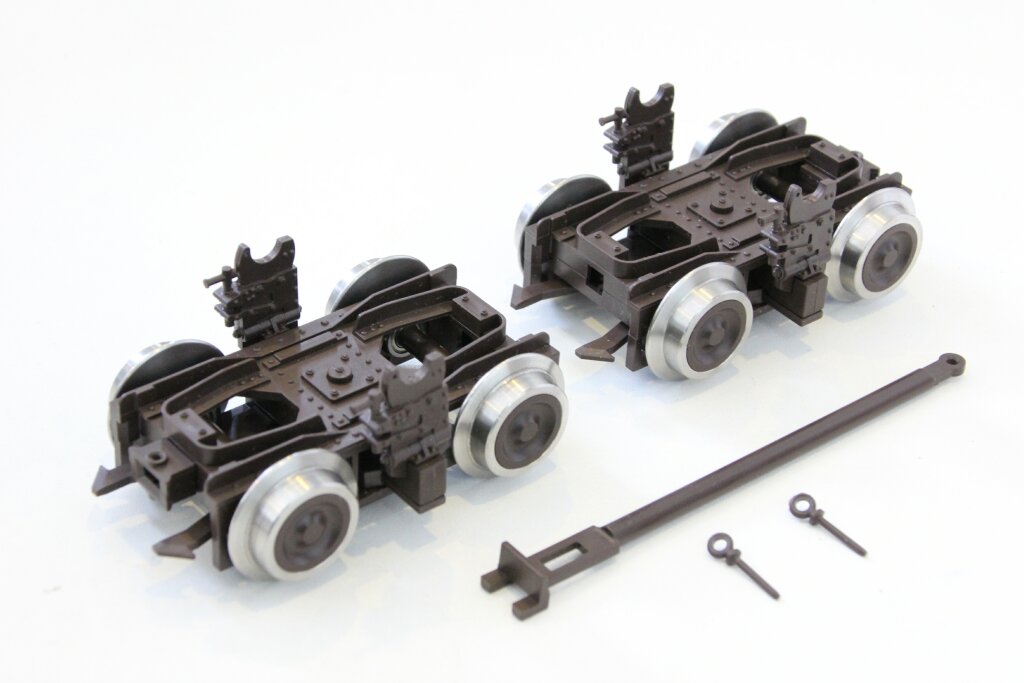 ![]() Foto 1: Die Rollböcke werden unter Art. Nr. 0005-0401 geliefert. Der Lieferumfang besteht aus zwei Rollböcken, einem Kuppelbaum und zwei Kuppelpinnen. ![]() Foto 2: Die Rollböcke sind mithilfe des Kuppelbaums mit den Kupplungen aller bekannten Hersteller kuppelbar. ![]() Foto 3: Bei der Entwicklung wurde das automatische Auf- und Abbocken von Normalspurwagen berücksichtigt. ![]() Foto 4: Die Rollböcke werden in der Farbe Braun geliefert. |