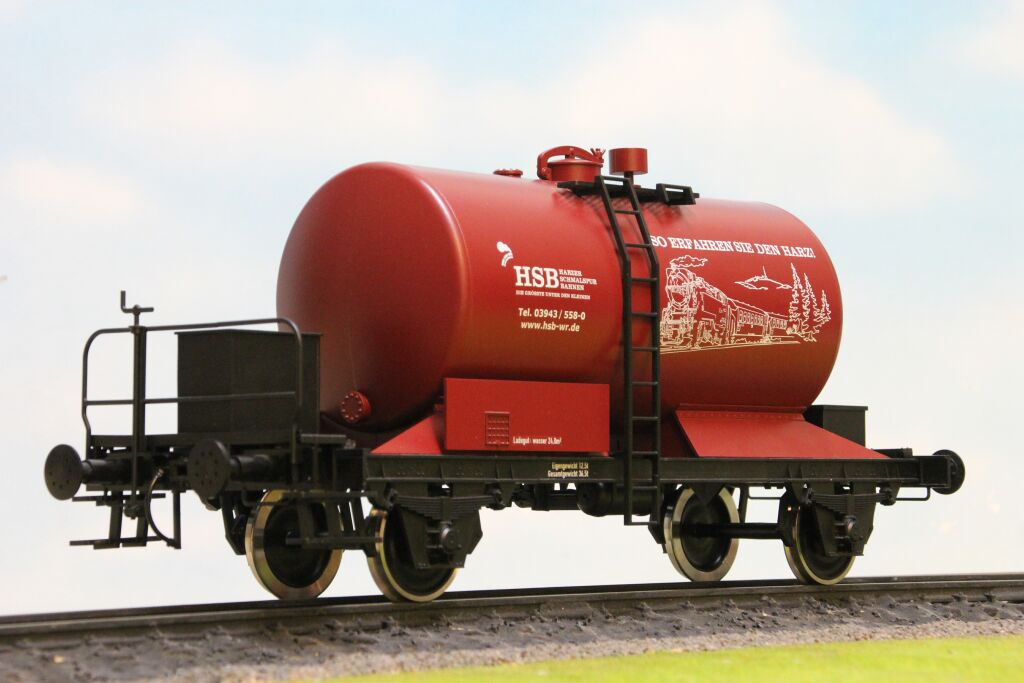 VORBILD Es gibt viele Arten von Ladegut, die per Eisenbahn befördert werden können. Flüssigkeiten werden mit sogenannten Kesselwagen transportiert, und diese flüssigen Güter gibt es in vielen Varianten – von Rohöl bis Benzin und von Fett bis Wasser. Mitte des 20. Jahrhunderts gab es eine enorme Vielfalt an Kesselwagen, da viele Betriebe über eigene "Privat"-Wagen verfügten, die nach ihren spezifischen Anforderungen gebaut wurden. Heute sind zweiachsige Kesselwagen nicht mehr so häufig anzutreffen. Bei den Harzer Schmalspurbahnen haben drei Exemplare überlebt, die alle unterschiedlich sind und deren Herkunft größtenteils unklar ist. Diese drei Wagen dienen heute als Wasserlager für die Waldbrandbekämpfung und wurden dafür umfassend angepasst. Die HSB hat die Wagen rot umlackiert und sie werden auf Rollwagen an ausgewählten Bahnhöfen vorgehalten. MODELL Das Modell stellt die HSB Kesselwagen in der heutige Ausführung dar. Viel Wert wurde auf die genaue Umsetzung im Modell gelegt. Wir haben den Wagen im Maßstab 1:22,5 nachgebildet. Das Modell wird aus hochwertigem Kunststoff hergestellt und entspricht den gültigen Spur II-Normen. Es ist mit edelstahlen Radreifen ausgestattet, und Kugellagerachsen sorgen für beste Fahreigenschaften. Die Puffer sowie die Achsen sind gefedert. Das Modell lässt sich mit vorbildgerechten Schraubenkupplungen nachrüsten (Art. Nr. 0006-0105). Das Modell ist als Ladegut für unsere Rollböcke (z.B. Art. Nr. 0005-0201 und 0005-0301) entwickelt worden, sodass Sie den Rollbockverkehr im Modell vollständig nachbilden können. Die passende Rollbockgrube erhalten Sie unter der Art. Nr. 0005-0001. Wir empfehlen, dieses Modell auf Bogengleisen mit einem Mindestradius von 120 cm zu verwenden. |