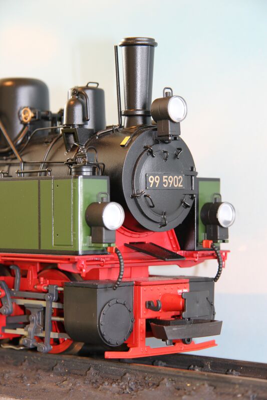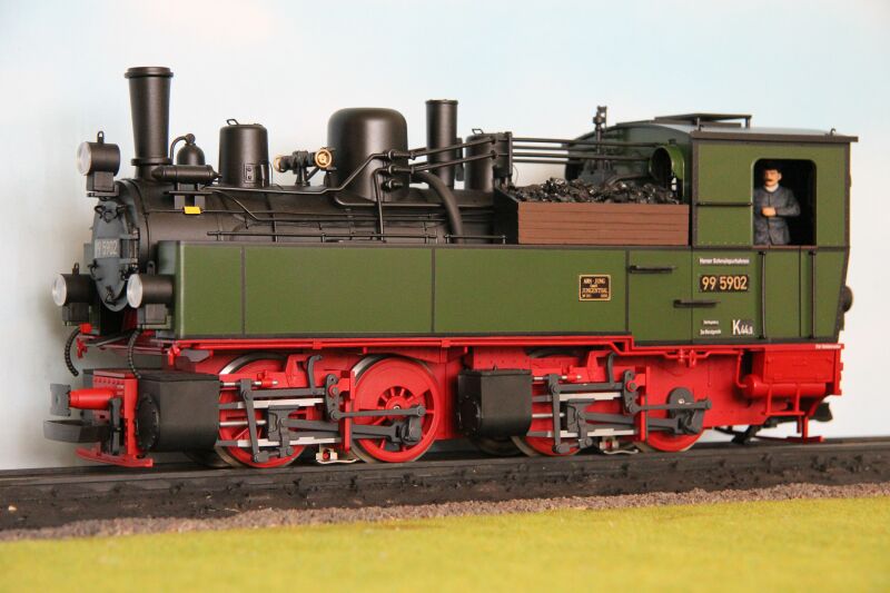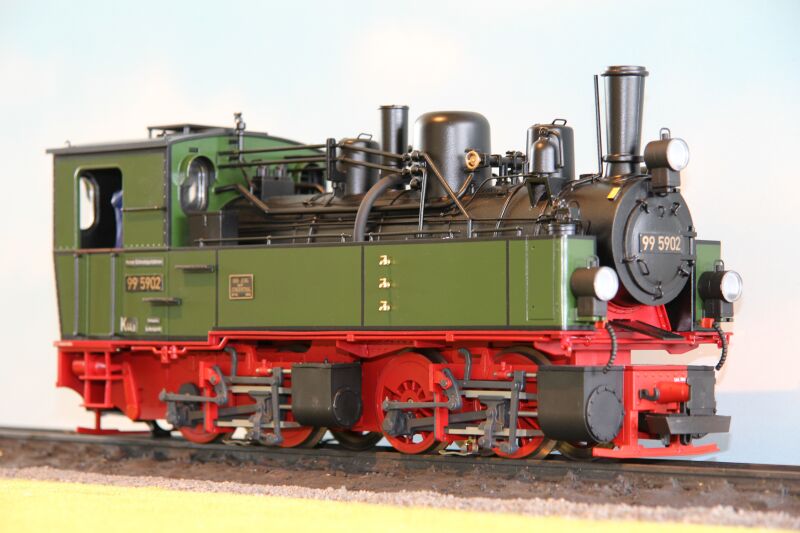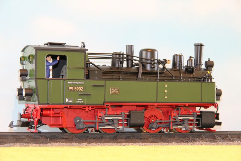 VORBILD Jahrzehntelang waren die Mallet-Lokomotiven die wichtigsten Fahrzeuge im Fuhrpark der Schmalspurbahnen im Harz. 1898 wurde diese Lokomotive (als NWE 14) von der Firma Jung aus Jungental geliefert. Diese Lokomotive existiert heute noch und gehört den Harzer Schmalspurbahnen. Die Lok ist nicht betriebsfähig. 1949 ging die Lokomotive von der NWE zur Deutschen Reichsbahn über. Seit 1993 ist die 99 5902 im Besitz der HSB. 2007 wurde die Lok Grün/Schwarz/Rot lackiert. MODELL Train Line 45 hat 2013 ein Modell der HSB Mallet entwickelt. Dieses gelungene und sehr maßstabsgetreue Modell bildet die Grundlage für unser Produkt. Viele Anpassungen wurden vorgenommen, und hier ist das Resultat: Alle Änderungen wurden von Hand angebracht, was der Lokomotive ein besonders hochwertiges Finish verleiht. Für diesen Mallet bieten wir optional den ESU Loksound XL 5 oder den ZIMO MX696S mit Däppen-Sound an. Diese werden ab Werk eingebaut. Beide Decoder sind technisch nahezu gleichwertig – Ihre Wünsche sind entscheidend. TECHNIK Die Lok verfügt über folgende Eigenschaften: